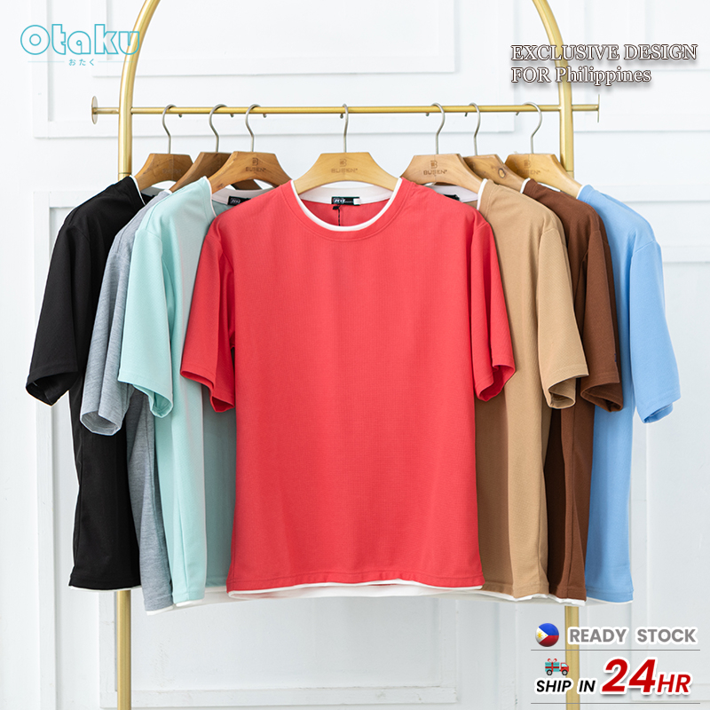 OTAKU Polo Shirt For Men Lapel Neck Short Sleeve Korean Style Unisex Plain Cotton Fits Plus Size