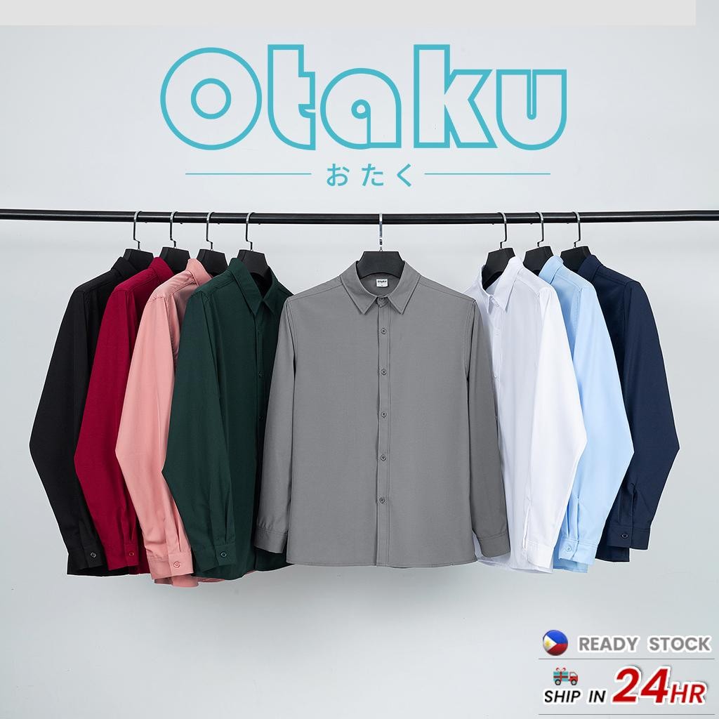 OTAKU Polo Shirt For Men Long Sleeve Fashion Shirt Polo Unisex Lapel Neck Plain Korean Style